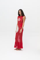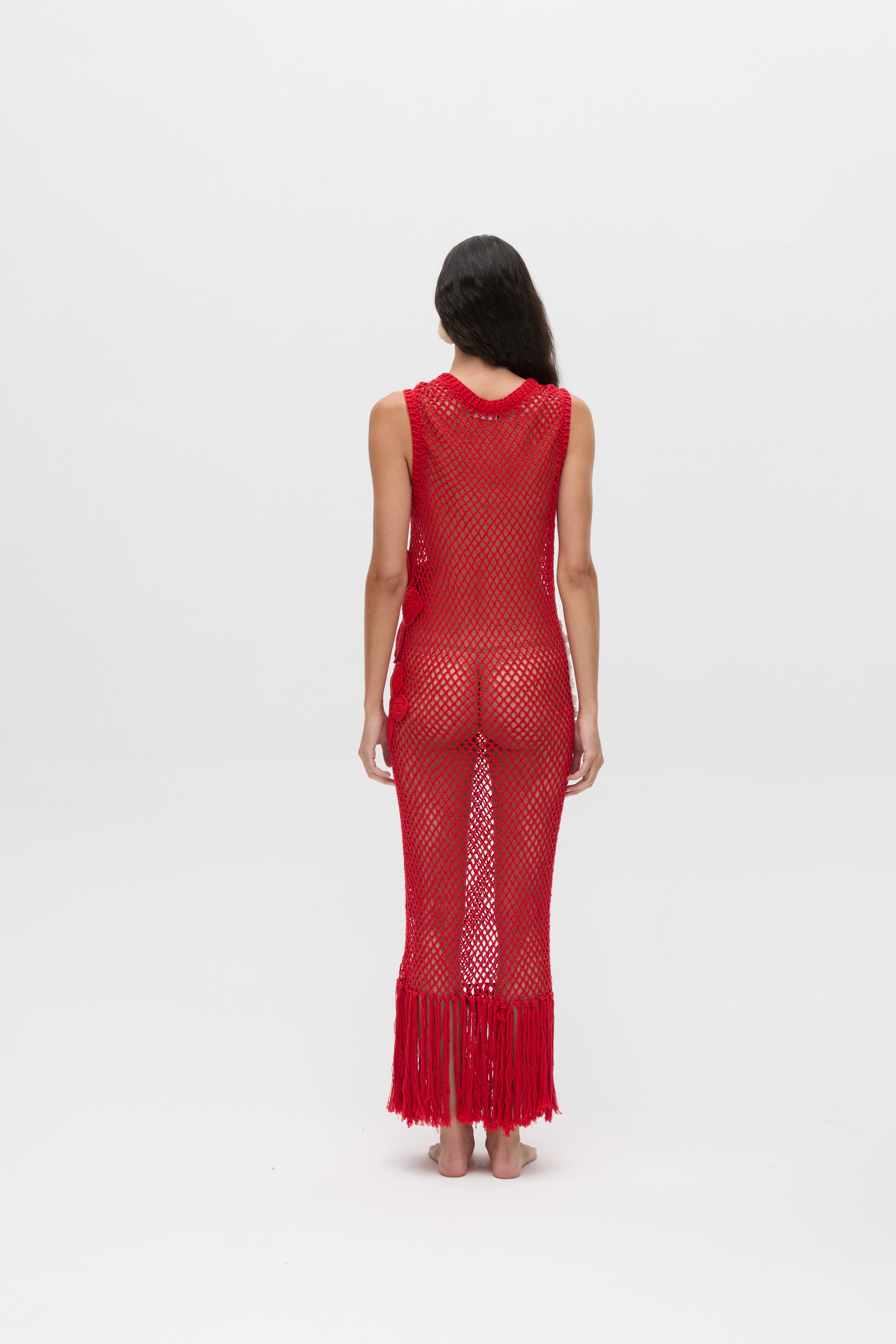 El Yapımı Kroşe Kırmızı Maxi Elbise
