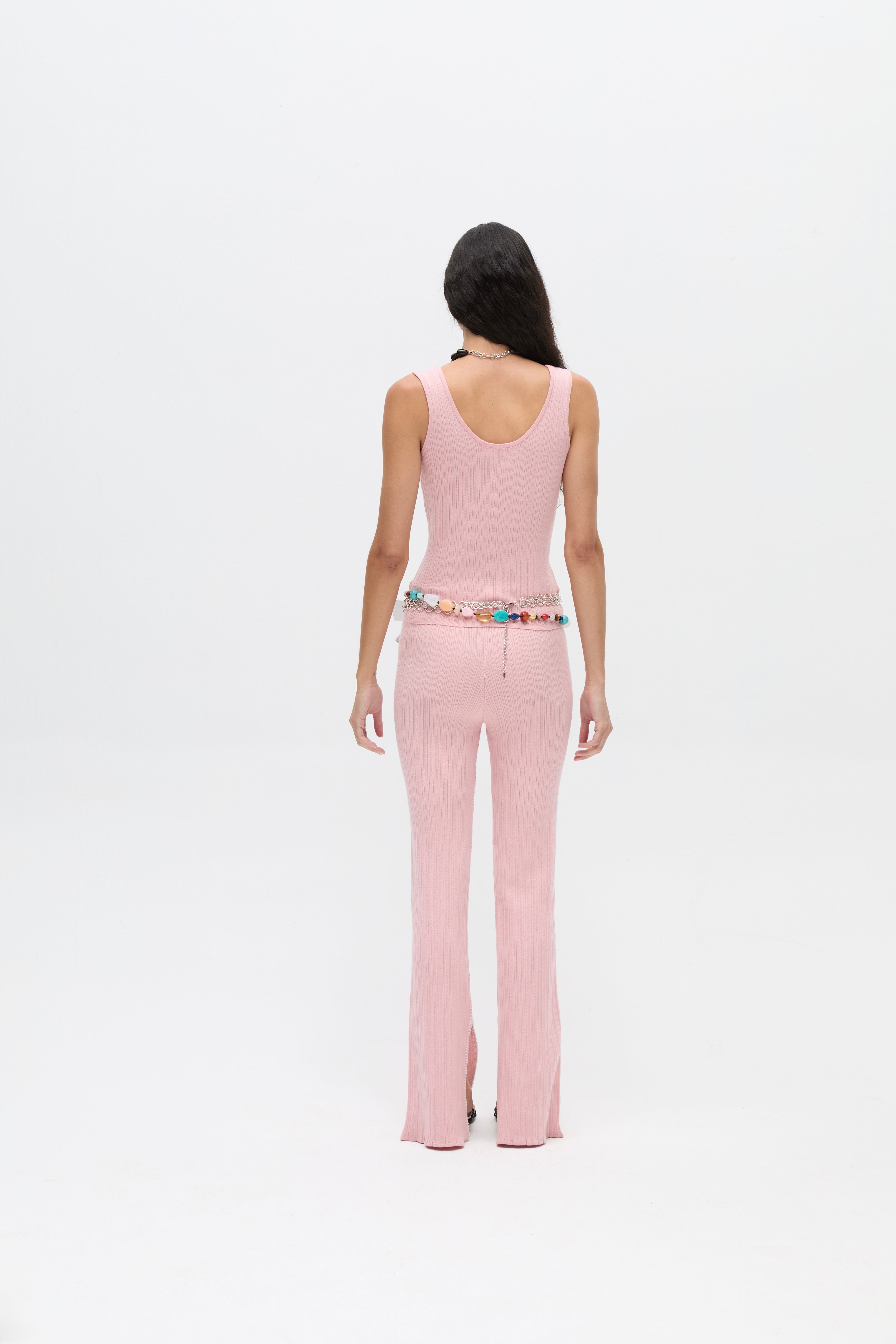 Rosa Pantolon, orta bel kesime ve hafif genişleyen paçalara sahip, ince örme bir modeldir. Bu form, uzun ve dengeli bir siluet oluşturur. Yumuşak dokusu rahat bir kullanım sunarken, şeklini koruyan yapısı düzgün bir duruş sağlar. Hem rahat hem de özenli görünümler için kullanılabilir.