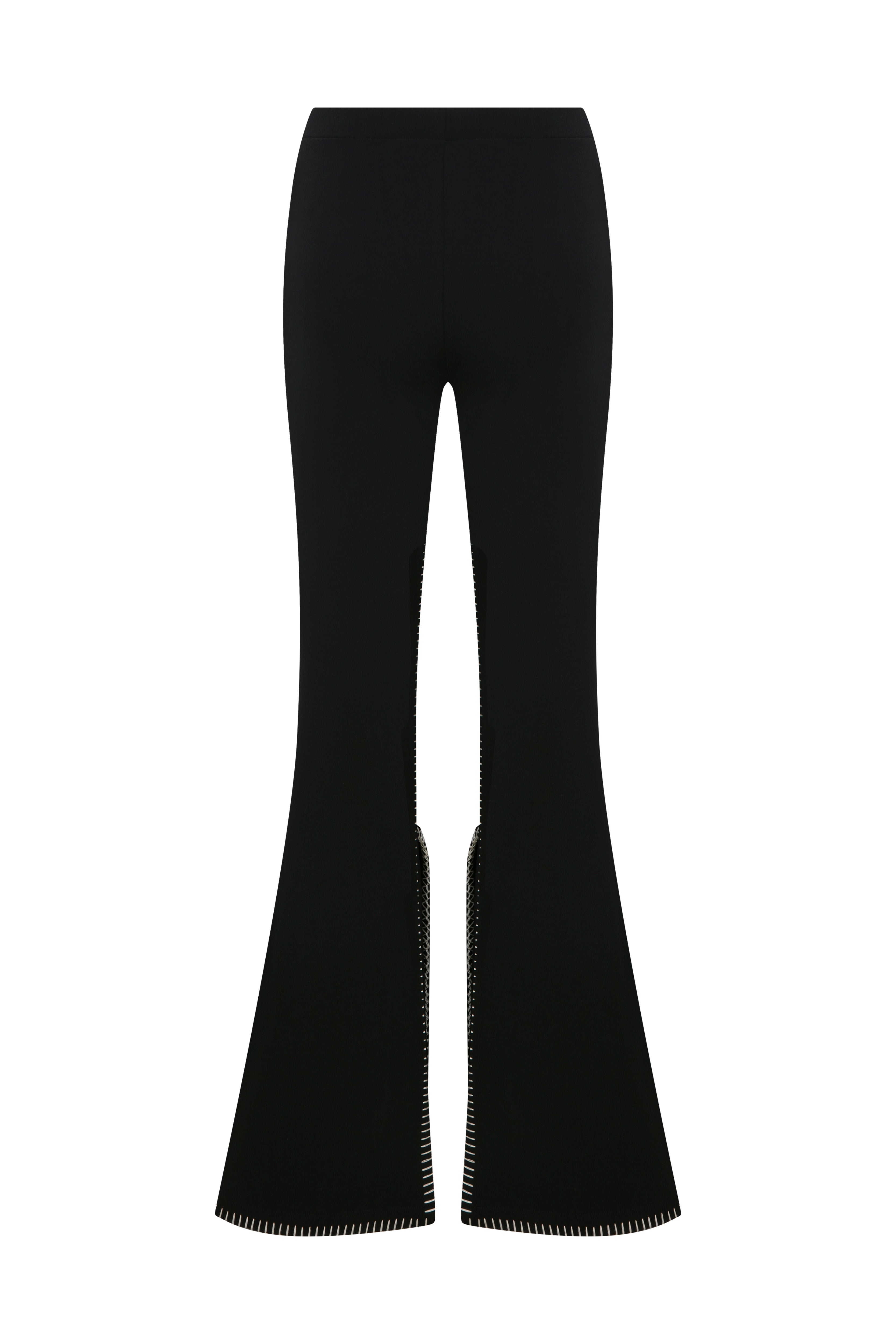 Bilek Yırtmaçlı Siyah İspanyol Paça Pantolon