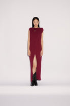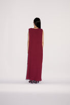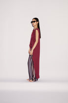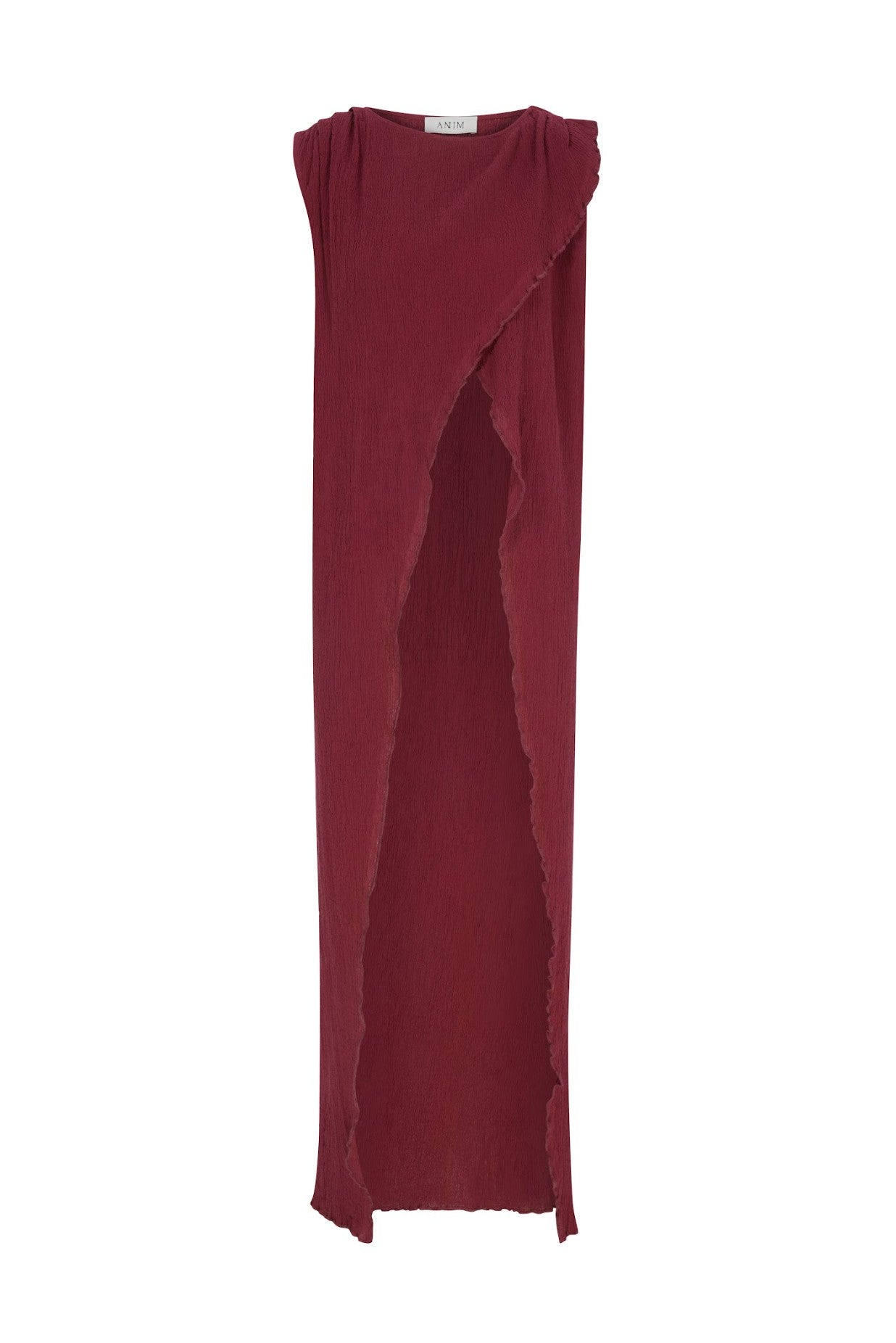 Ön Yırtmaç Detaylı Kırışık Dokulu Bordo Uzun Üst