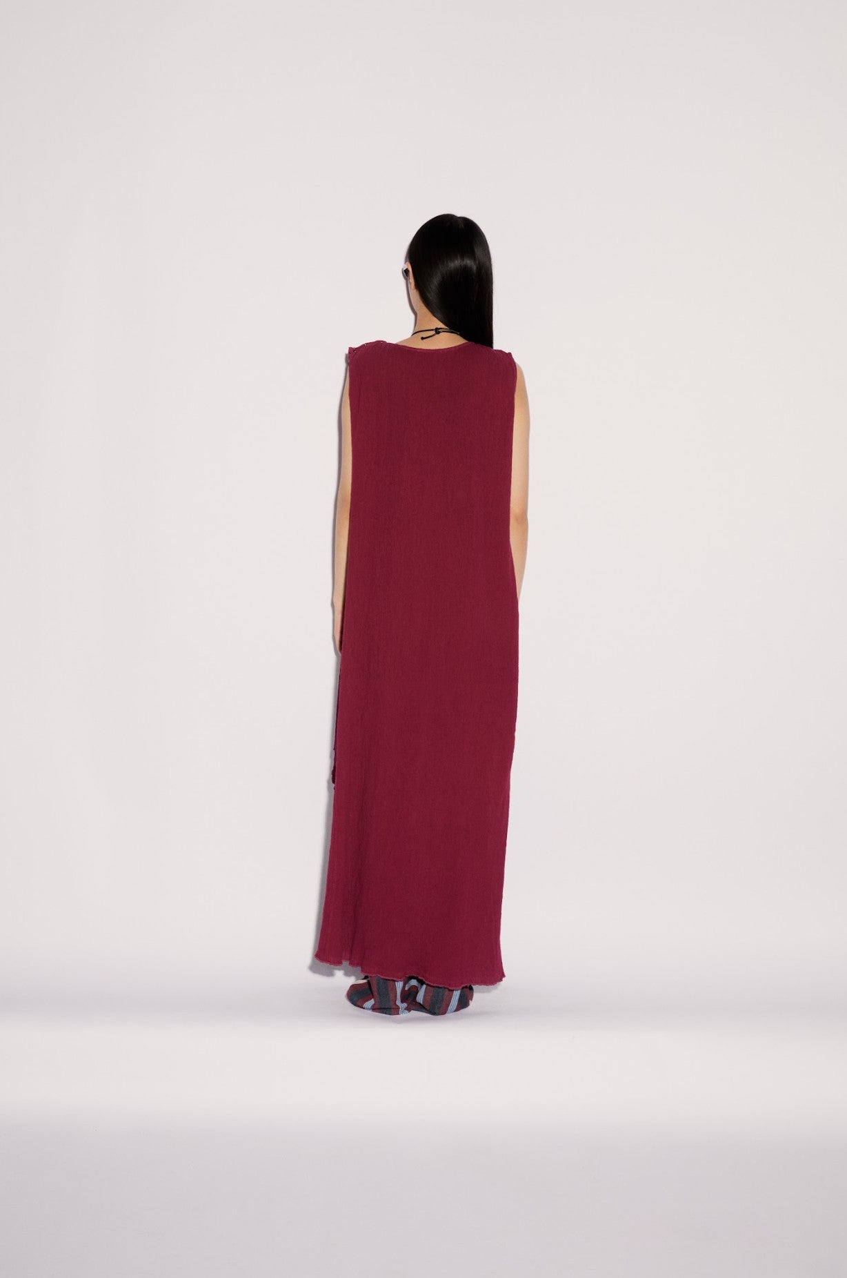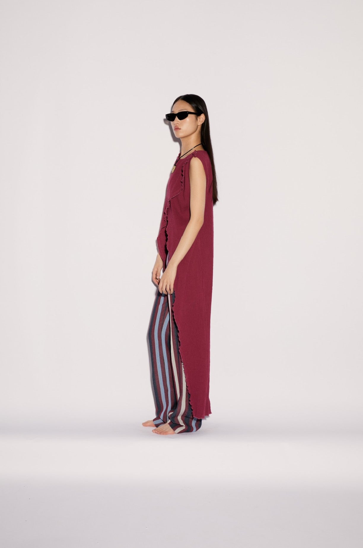 Cira Üst, kırışık dokulu pamuktan üretilmiş olup derin bordo renkte uzun bir üsttür. Hareket ve rahatlık katan ön yırtmaç detayıyla öne çıkar. Uzun silueti ve dokulu görünümü sade bir çekicilik sunarken modern bir dokunuş katar.
