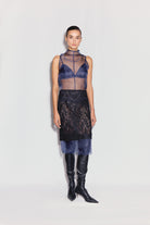 Anna Etek, siyah renkte midi boy bir etektir ve zarif bir dantel katman ile yumuşak organze astara sahiptir. Düz siluetiyle diz altına kadar iner ve şıklık ile kullanışlılık arasında sofistike bir denge sunar. İnce işçilikli dantel dokuya derinlik ve zenginlik katarken transparan astar zarif bir çekicilik katar. Hem gündüz şıklığı hem de akşam zarafeti için sade bluzlar veya şık ceketlerle mükemmel bir şekilde kombinlenebilir.