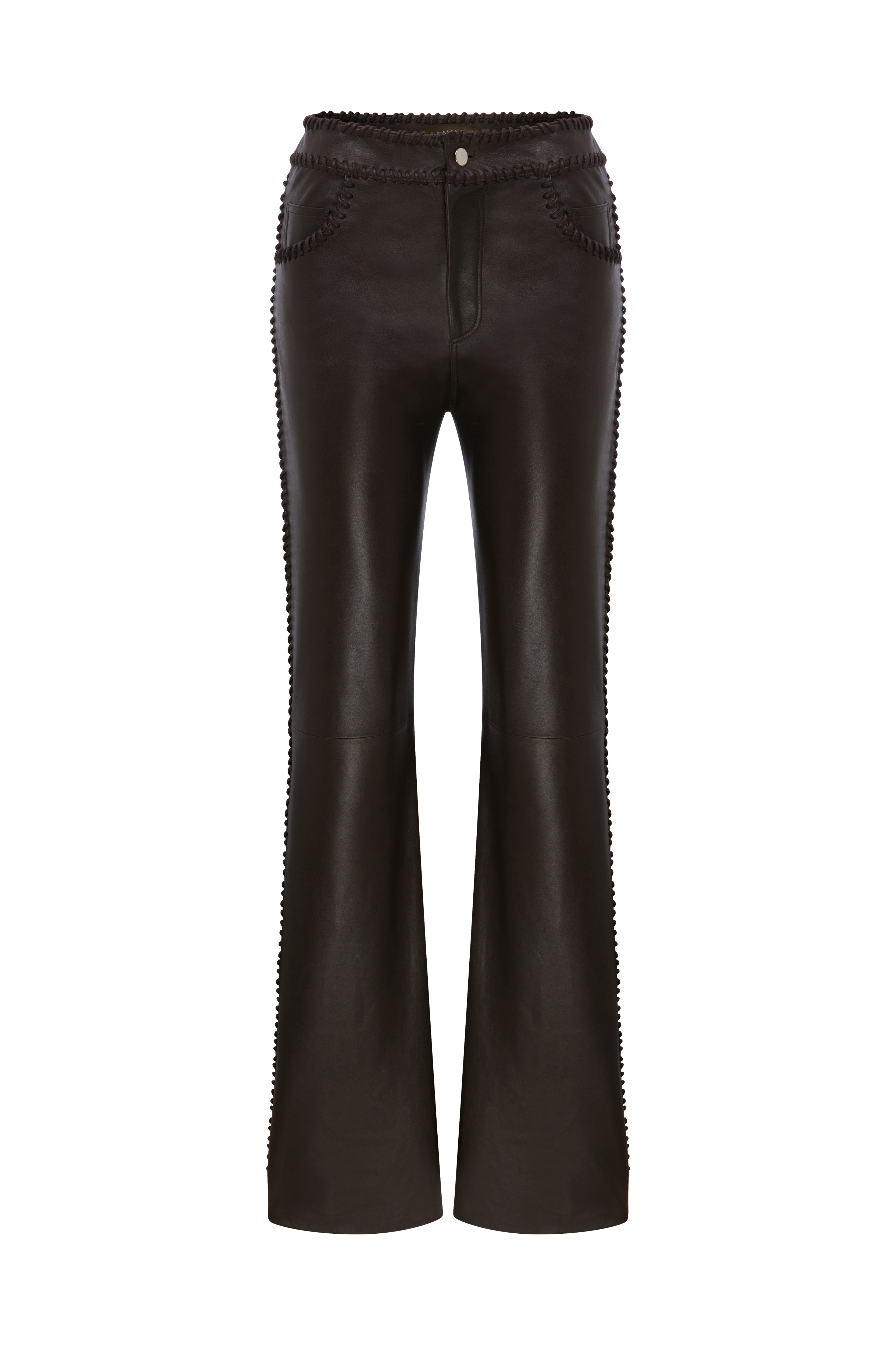 Devon Pantolon, yumuşak kuzu derisinden üretilmiş, orta bel ve düz paçalı bir pantolondur. Belde rahatça oturacak şekilde tasarlanmış olup minimal dikişlerle temiz ve bacak boyunu uzatan bir görünüm sunar. Derinin doğal ve esnek yapısı hareket kolaylığı sağlarken şık bir görünümü korur.