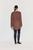 Hudson Elbise, kahverengi süetten üretilmiş, ton sür ton nakış detaylarına ve yaka kısmında bağcık süslemelerine sahip bir elbisedir. Düz ve rahat bir siluetle tasarlanmış olup, konforlu bir kullanım sunarken şık ve iddialı bir görünüm sağlar. Manşetler ve etek ucundaki metal halka süslemeleri, tasarıma modern bir dokunuş katar ve elbiseyi hem gündüz hem de akşam kullanımı için çok yönlü hâle getirir.