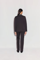 Lexa Pantolon, koyu kahverengi renkte olup bel kısmında sedef düğme detaylarıyla tamamlanmış düz paça özel kesim bir pantolondur. Pürüzsüz polyester-viskon karışımından üretilmiştir, yüksek belden oturur ve bacak boyunca temiz bir düşüşle silüeti uzatır. Kesimi, özenli terzilikle konforu birleştirir ve onu hem takım ceketiyle hem de sade ve zarif bir üstle kombinlemek için ideal hale getirir.