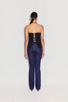 Marlo Üst, arka kısmında zarif bağcık detayları bulunan siyah bir straplez üsttür. Hafif esneme payına sahip yapılı bir pamuk karışımından üretilmiştir, vücuda oturan ve destekleyici bir form sunarken rahat hareket imkânı sağlar. Temiz ve minimal ön kısmı, eğlenceli bağcık tasarımıyla kontrast oluşturarak parçaya hem gündüz hem de gece kombinlerine uyum sağlayan sofistike bir hava katar.