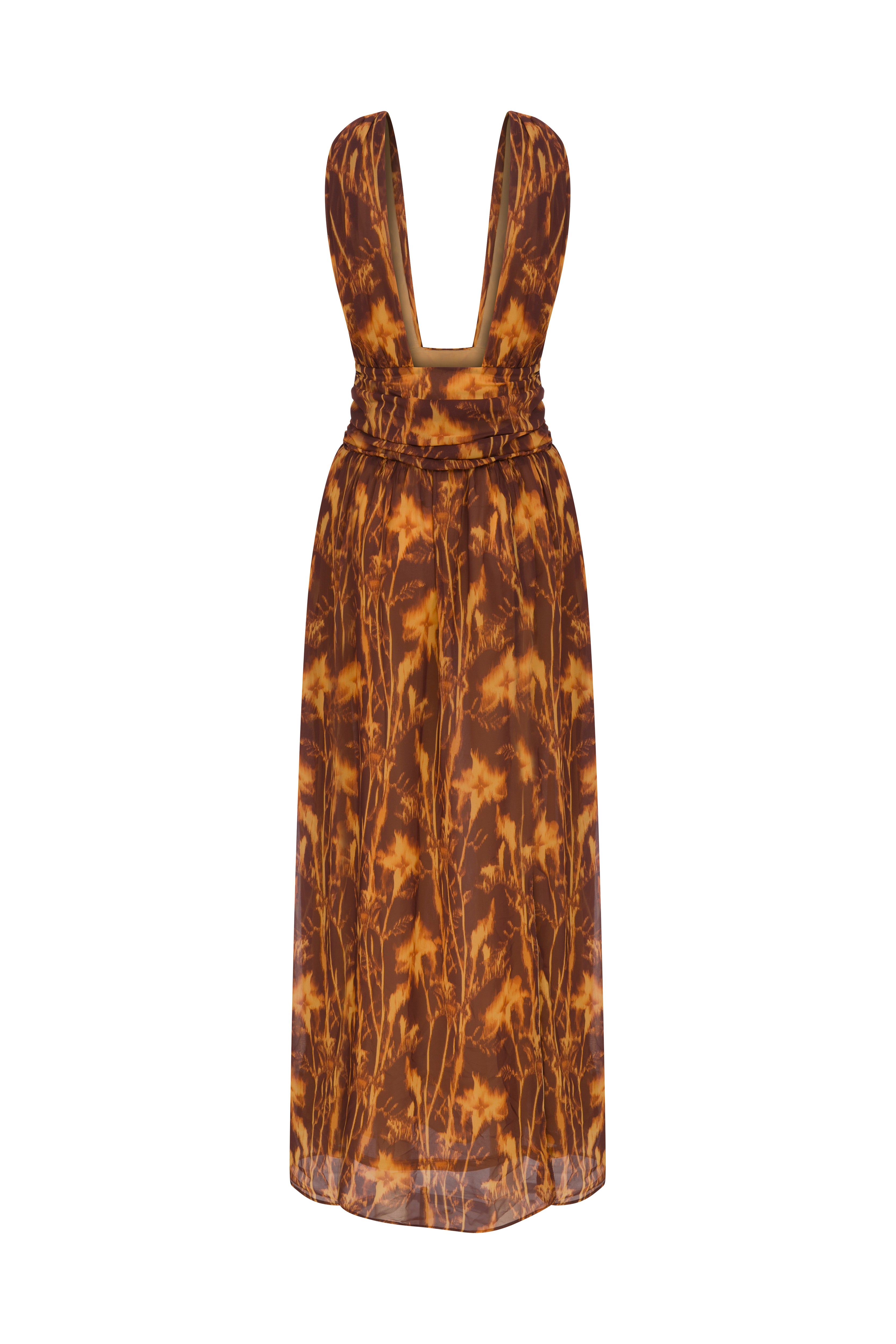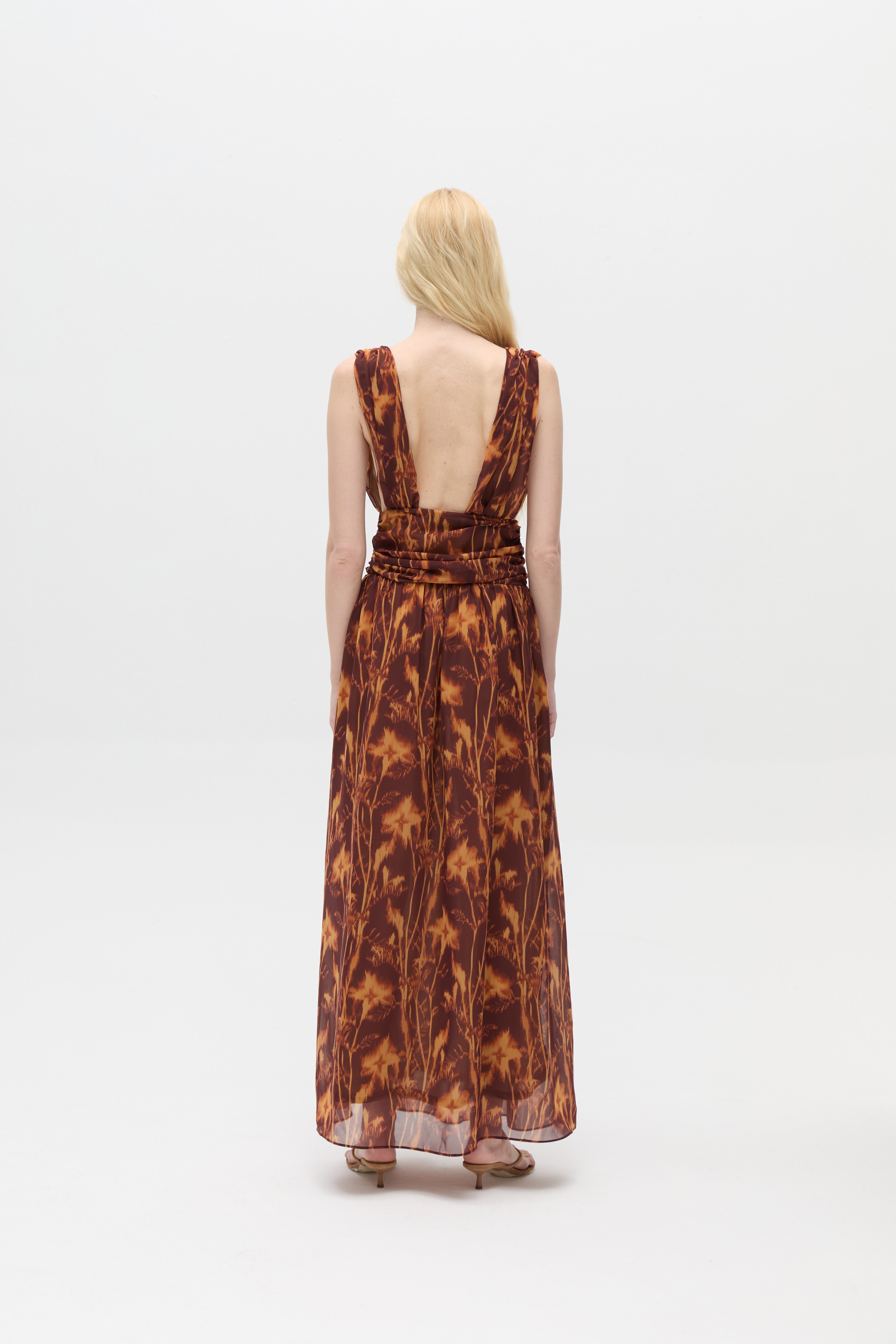 SOLA – Desenli Şifon Ve Kolsuz Maxi Elbise