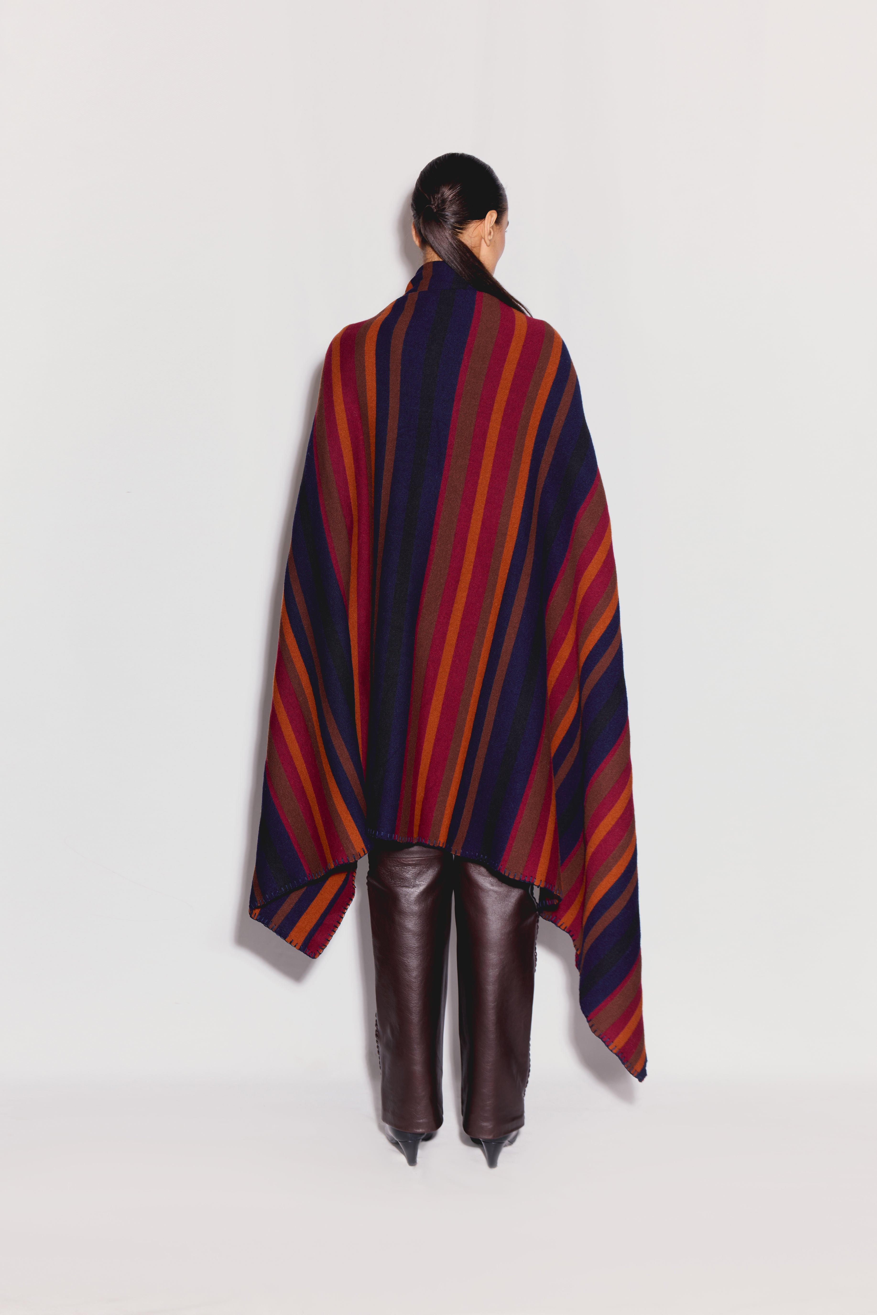 GABI – Lacivert Karışımlı Çoban Dikişli Kuzu Yünü Battaniye