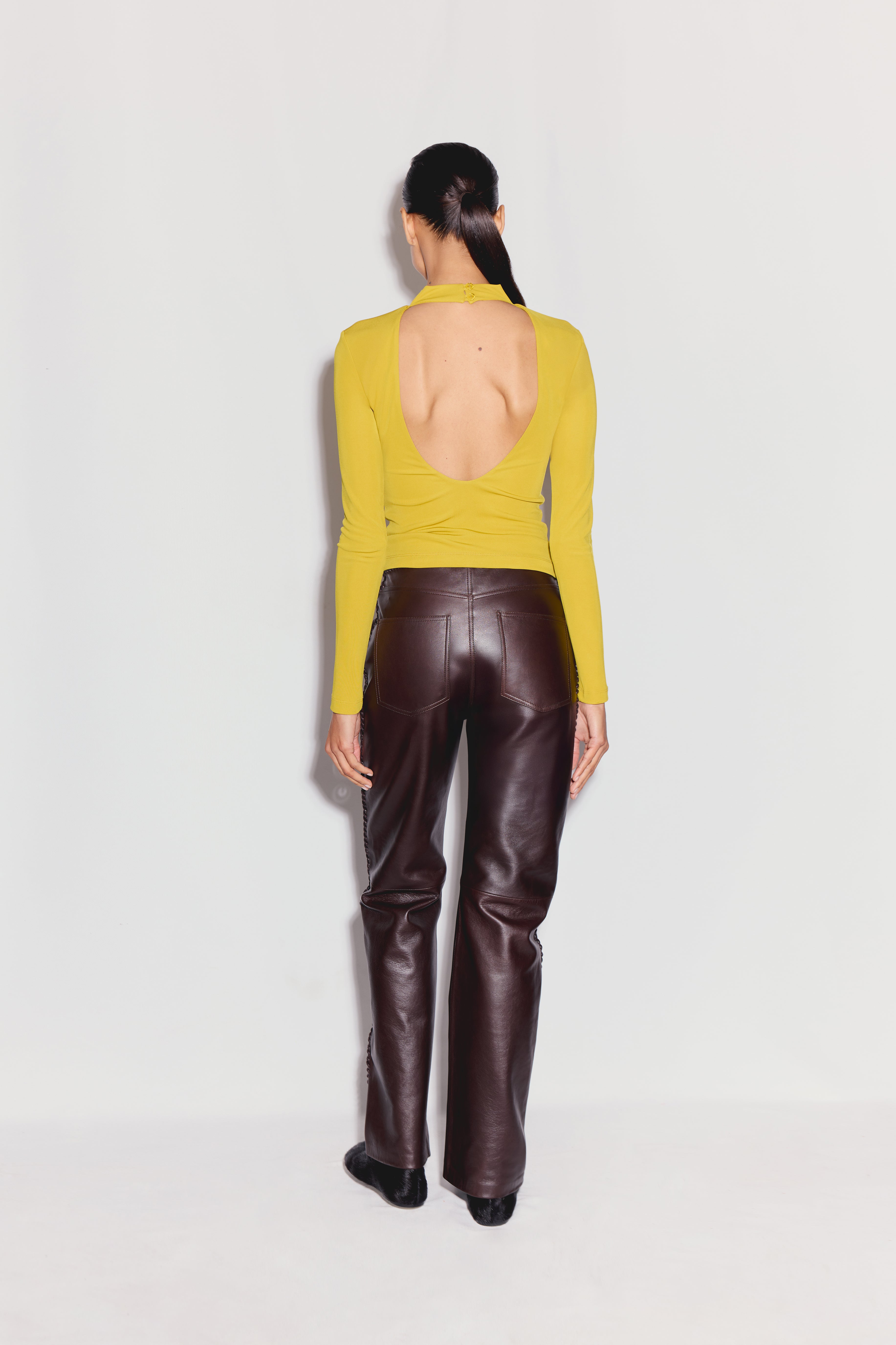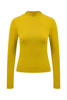 The Wade Top is a high neck long sleeved top in a rich mustard hue, one of the warm tones of the season. Crafted from soft viscose, it gently follows the body’s natural shape without feeling restrictive. Its slim fit design offers a sleek silhouette, making it perfect for layering or wearing on its own for a clean, minimal look.