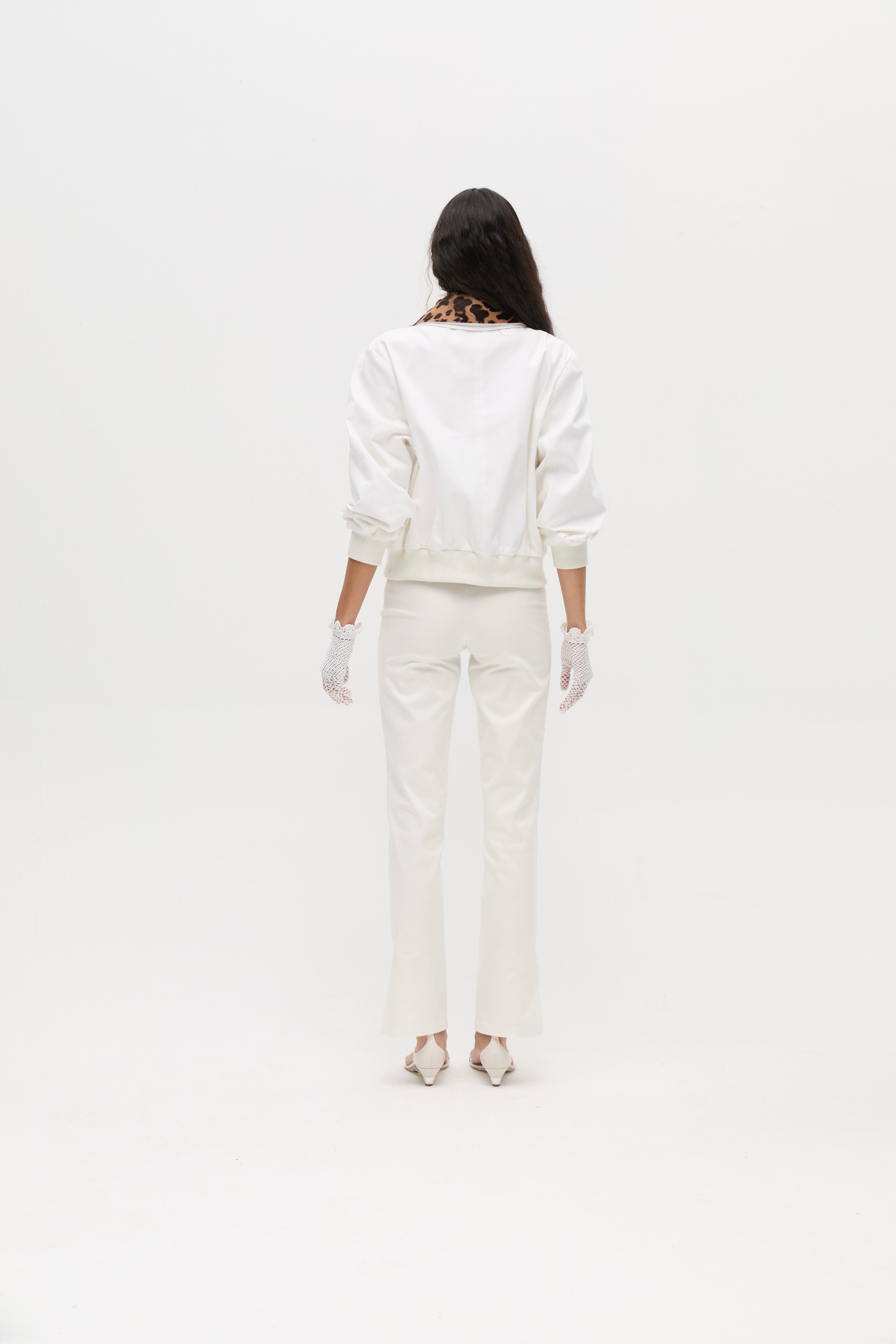 Alba Pantolon, gabardin kumaştan üretilmiş olup, orta bel ve düz paça kesimiyle zarif ama çok yönlü bir görünüm sunar. Akıcı formu sayesinde doğal hareket özgürlüğü sağlarken, gün boyu şeklini korur ve konforlu bir duruş sağlar.
