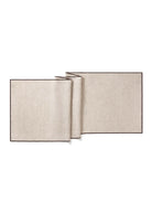 Margot Runner, keten kumaştan üretilmiş olup kontrast kahverengi biye detayıyla tamamlanmıştır. Zarif ama doğal bir görünüm sunarak farklı sofra düzenleriyle uyum sağlar. Zamansız tasarımı sayesinde hem günlük kullanıma hem de özel davetlere uygundur. Tekli olarak satılır.