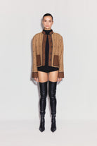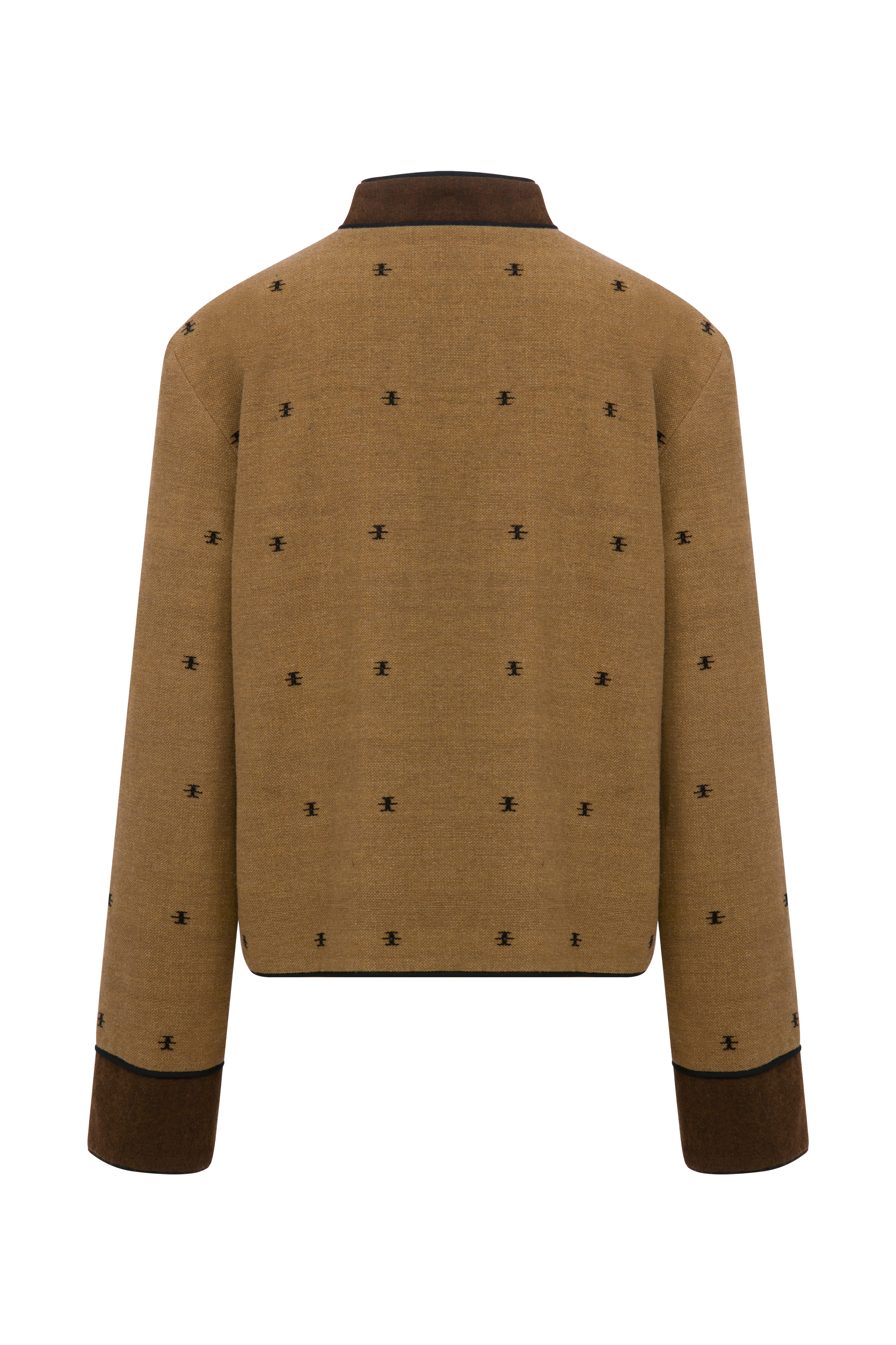 The Mera Jacket is a beige and brown Ehram fabric jacket adorned with subtle embroidery and finished with contrasting pocket panels. Tailored in a straight, slightly relaxed cut, it layers comfortably over both lightweight tops and knitwear. The structured design and detailed craftsmanship make it a versatile outerwear choice for transitional seasons.